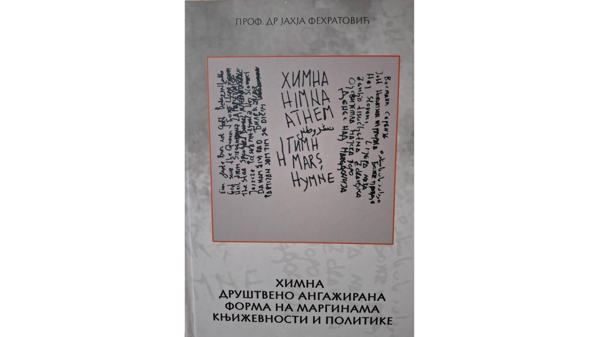 Knjiga „Himna – društveno angažirana forma na marginama književnosti i politike“, autora prof. dr Jahje Fehratovića (Novi Pazar, 1982), univerzitetskog profesora, objavljena je u Beogradu, u izdanju “Ind Media Publishing”. Ova sadržajno vrijedna knjiga, pored Uvoda i Literature, sadrži sljedeća poglavlja: Himna – nosilac snažnog suodnosa književnosti i politike; Transformacija himne iz vjerske u nacionalnu i revolucionarnu pjesmu; Od nacionalne i revolucionarne budnice do panslavenske himne; Revolucionarno pjesništvo himničnog zaslona u bošnjačkoj književnosti XVIII I XIX vijeka; Tradicija himne kod Srba u XVIII i XIX vijeku; Od Ilirske budnice preko davorije do hrvatske nacionalne himne; Crnogorska dinastijska himna; Himne na prostoru Kraljevine SHS i Kraljevine Jugoslavije; Monarhijska himna; Himne revolucionarnih pokreta u Kraljevinama SHS i Jugoslaviji; Himne Međunarodnog radničkog pokreta na prostoru Kraljevine SHS i Jugoslavije; Himne Proleterskog pokreta na prostoru Kraljevine SHS i Jugoslavije; Himnične pjesme političkih zatvorenika i omladinske budnice; Himna u Drugom svjetskom ratu; Himna u jedinicama narodnooslobodilačke vojske; Himna u vojnim postrojbama NDH; Himna u Otadžbinskoj vojsci Kraljevine Jugoslavije; Himna u Socijalističkoj Federativnoj Republici Jugoslaviji; Postjugoslovenske države i njihove himne; Himna Republike Srbije; Himna Republike Hrvatske; Himna Bosne i Hercegovine; Himna Sjeverne Makedonije; Himna Slovenije i Himna Crne Gore.